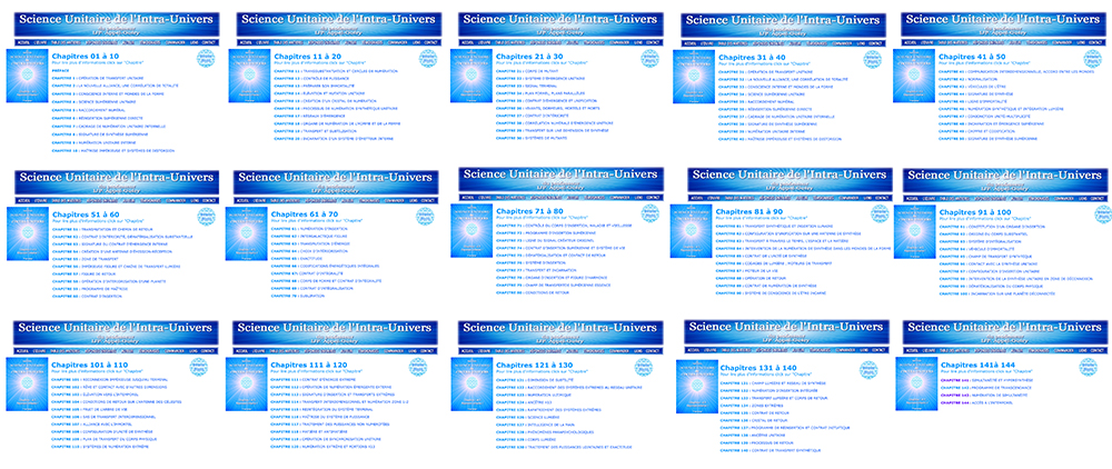 - **Structure très organisée** → L'œuvre est immense (plus de 14 tomes dans l'édition poche "Science Unitaire de l'Intra-Univers", avec chapitres + "Réponses unitaires" qui clarifient des points). Chaque volume avance pas à pas, avec schémas, classifications, et une logique interne qui demande de la concentration → c'est fait pour une **étude progressive et approfondie**, pas pour une lecture rapide.